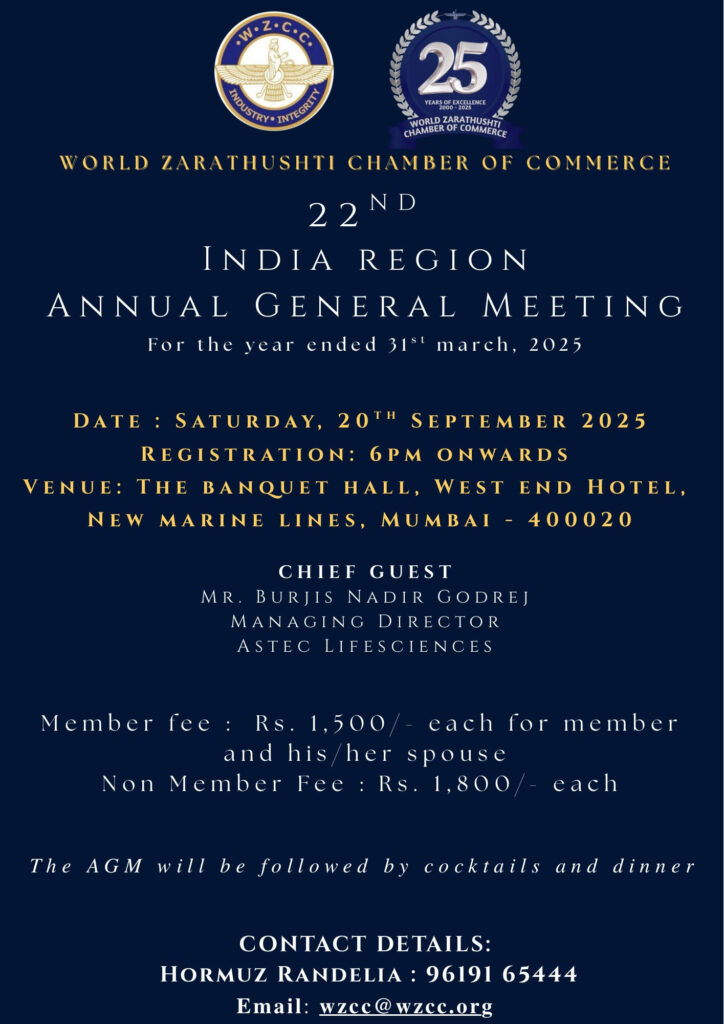 The Chamber’s mission is to energize Zarathushti entrepreneurial spirit in countries of the world through a networking of business and professionals. We stand ready to help and support each other and grow together as businesses and in turn support and strengthen our worldwide Zarathushti community. Be an Entrepreneur: The Chamber’s main asset will be its database providing information on topics ranging from worldwide job availability and business opportunities to a bank of historical data on Who’s Who in the fast paced World Zarathushti Business Arena. WZCC invites business initiatives, encourages networking and allows our members to enunciate or advertise their business and concepts too.