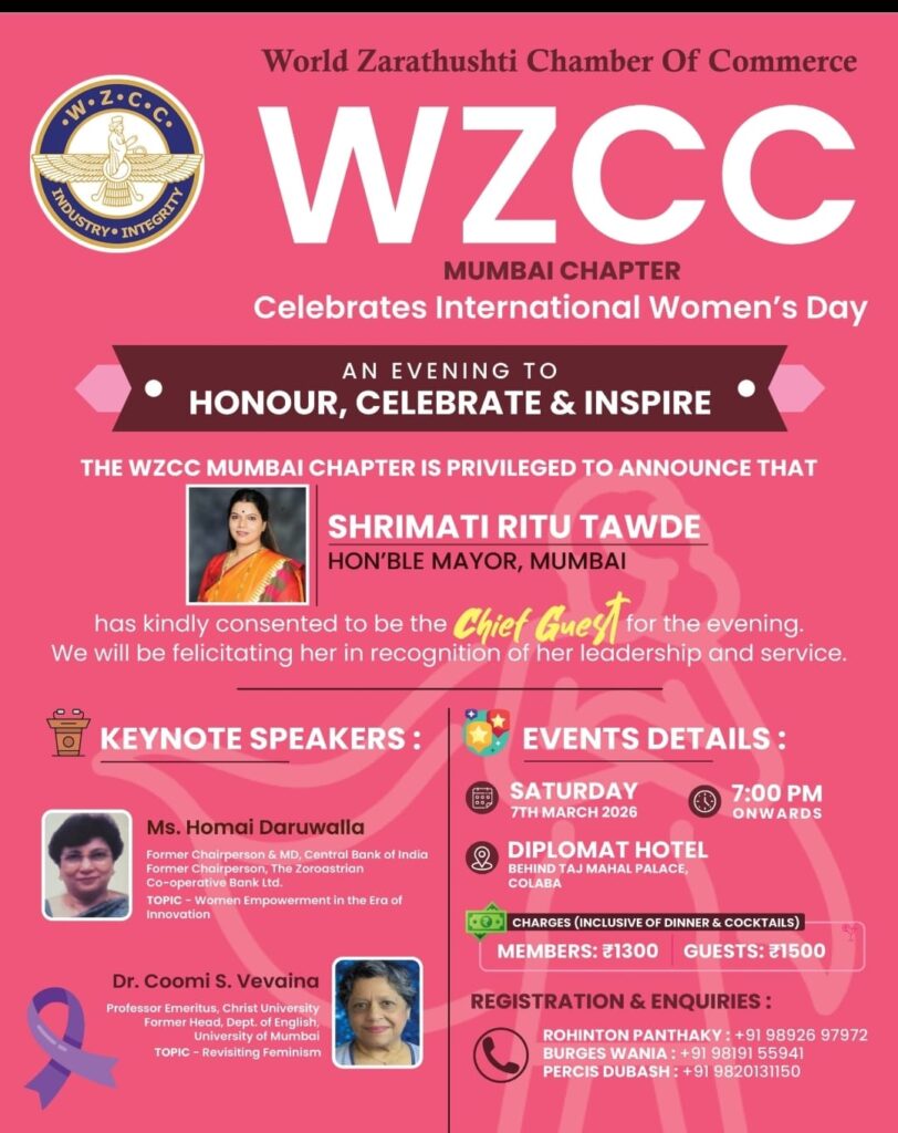 WZCC Mumbai Chapter celebrates International Women’s Day on 7th Mar’26 at Diplomat Hotel, Colaba, 7pm onwards
